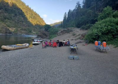 Camp/Camp (CC): If sleeping under the stars on the banks of a gorgeous river appeals to you, then our Camp/Camp vacation is for you. It’s not like you’re roughing it – we put together a fantastic camp. You have the option of sleeping under the stars or in a tent that has been put up for you. Cots and sleeping bags are available upon request, and sleeping pads are provided. We provide comfy chairs, a bonfire (if in season). The guides transform into gourmet chefs in the mornings and evenings, preparing all of the meals and cleaning up afterward. On every one of our camping trips, we have at least one raft that transports all of our camping gear and sets up our camps.