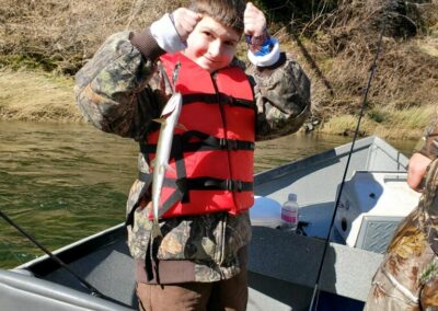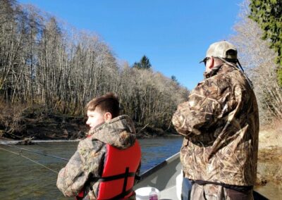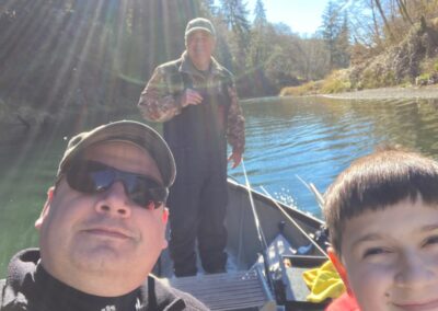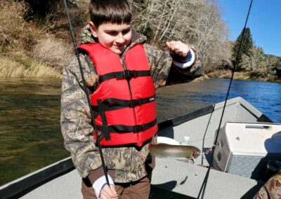 We fish from a 24′ Jerry’s Marine open sled boat, specially designed to allow us to maneuver up and down the Rogue River. We can accommodate 2-4 anglers comfortably; however, 3 anglers are ideal.